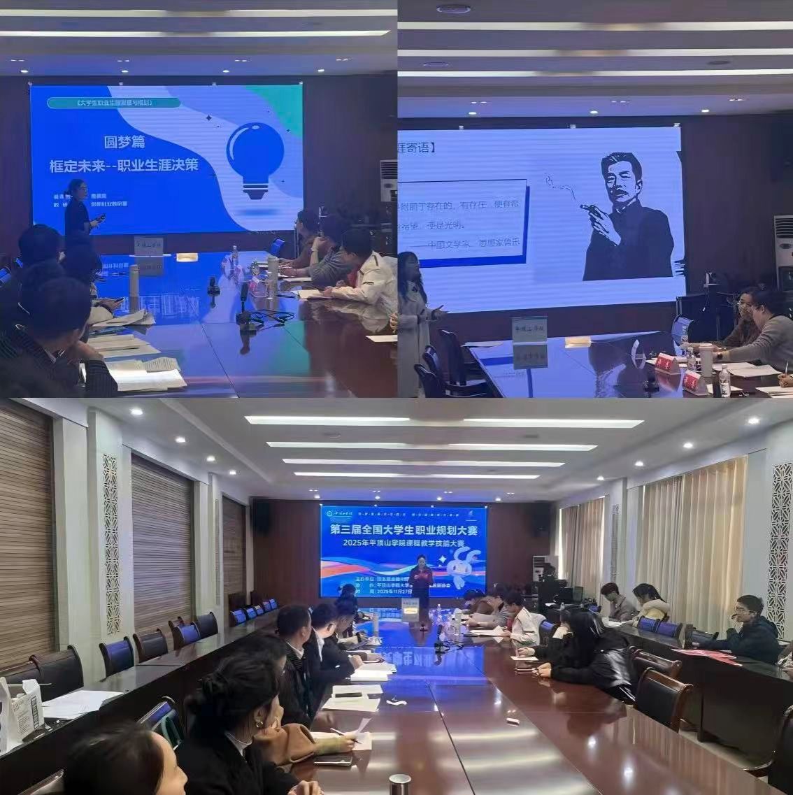 为深入贯彻落实《教育部关于举办第三届全国大学生职业规划大赛的通知》及《河南省教育厅办公室关于举办第三届全国大学生职业规划大赛河南省赛的通知》(教办学〔2025〕285号)精神,全面提升我校生涯教育与就业指导工作水平,11月27日下午,由教务处与创新创业学院联合主办的“第三届全国大学生职业规划大赛课程教学技能比赛”平顶山学院校赛在行政楼329会议室成功举办。