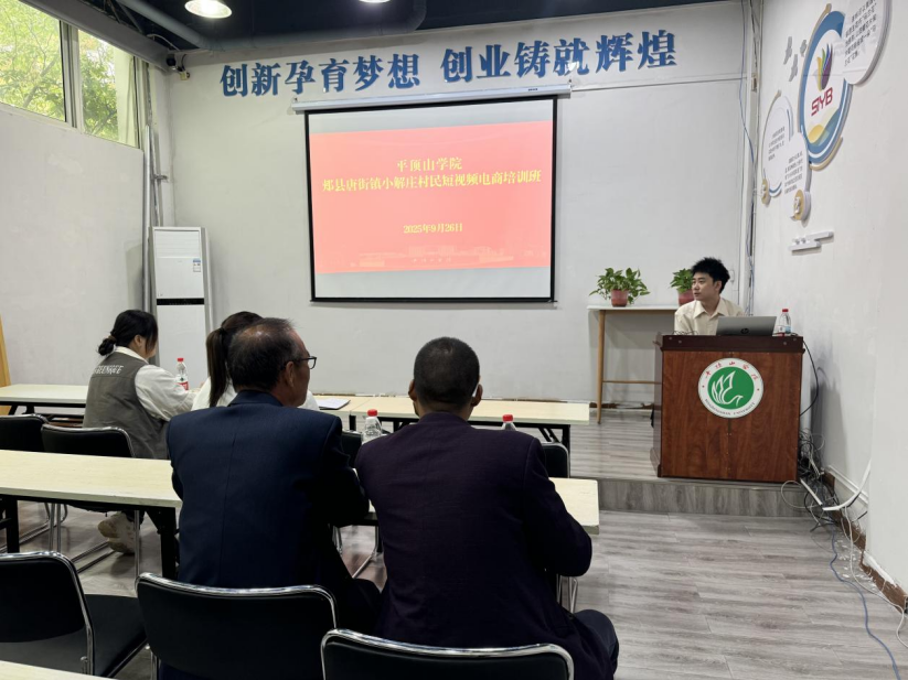 为深入服务地方经济社会发展,赋能乡村振兴,提升农村居民数字技能,平顶山学院招生就业处(创新创业学院)充分发挥组织协调与资源整合优势,依托其下属的河南省跨境电子商务人才培训暨企业孵化平台,联合新闻与传播学院,于9月26日举办“郏县唐街镇小解庄村民短视频电商培训班”,为当地村民带来了一场内容实用、干货满满的电商技能培训。此次活动是招生就业处(创新创业学院)积极推动校地合作、助力乡村发展的又一重要举措。